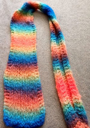 Since making the multicolour scarf I have also made more scarves and a blanket, much of the knitting done in the car. My husband is also happy as I don’t react as much to the driving! I have not knitted any clothing for a long time, but today bough some yarn and a pattern for a simple jumper. I have several items knitted, but don’t have the confidence to sew them up and pick up necks etc. I am hoping that I will regain some confidence as I used to knit quite detailed things and I have done picture jumpers when the were trendy, I wouldn’t be able to follow the patterns now.