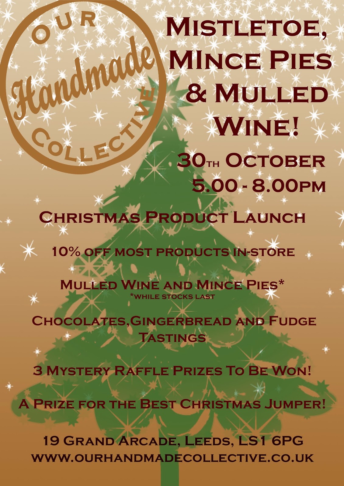 A must is the Christmas launch at Our Handmade Collective on Thursday 30th October 5 till 8pm. There will be mulled wine, guess I will be driving home after that. Also mince pies and chocolate, gingerbread and fudge, well Rob will be happy, he can do the tastings whilst I spend his money!