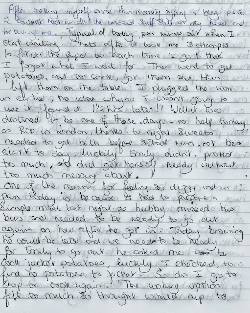 I was have a really bad day mentally and physically, awful pain, dizziness and feeling sick and a brain that just wouldn’t work, to name but a few of the symptoms. Some of the symptoms are getting quite scary, the numbness and tingling in my feet, legs, arms, hands and face, the awful dizziness that makes it hard to even sit up and the brain that feels like it has ceased up. I finally decided to make a Drs appt, but it is 2 weeks away and I know she can’t do anything, so I may even cancel it before I go, I don’t like wasting her time or stopping other people being able to get seen.