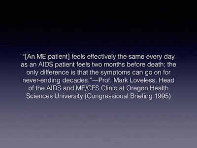 Firstly an article from Health Rising, “The authors looked at median and mean quality of life scores. The median scores are a more accurate measurement of a community because they’re not skewed by people with really high or low scores. How did the quality of the lives of people with ME/CFS stack up next to those of people with cancer, multiple sclerosis, heart attack or stroke? They were worse – significantly worse.” There is another take on it here stating “In a list of 21 medical conditions, including: breast cancer, colon cancer, heart disease, renal failure, stroke brain, lung cancer, rheumatoid arthritis, sclerosis, depression, angina, among 10 others…ME/CFS is listed first in severity of disability. FIRST.”