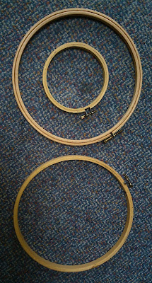 3 embroidery hoops 9 1/2 cm, 19 1/2 cm, 20cm dia.